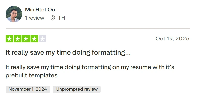 The user expressed that the predesigned templates made formatting their resume effortless, helping them save a lot of time in the process.